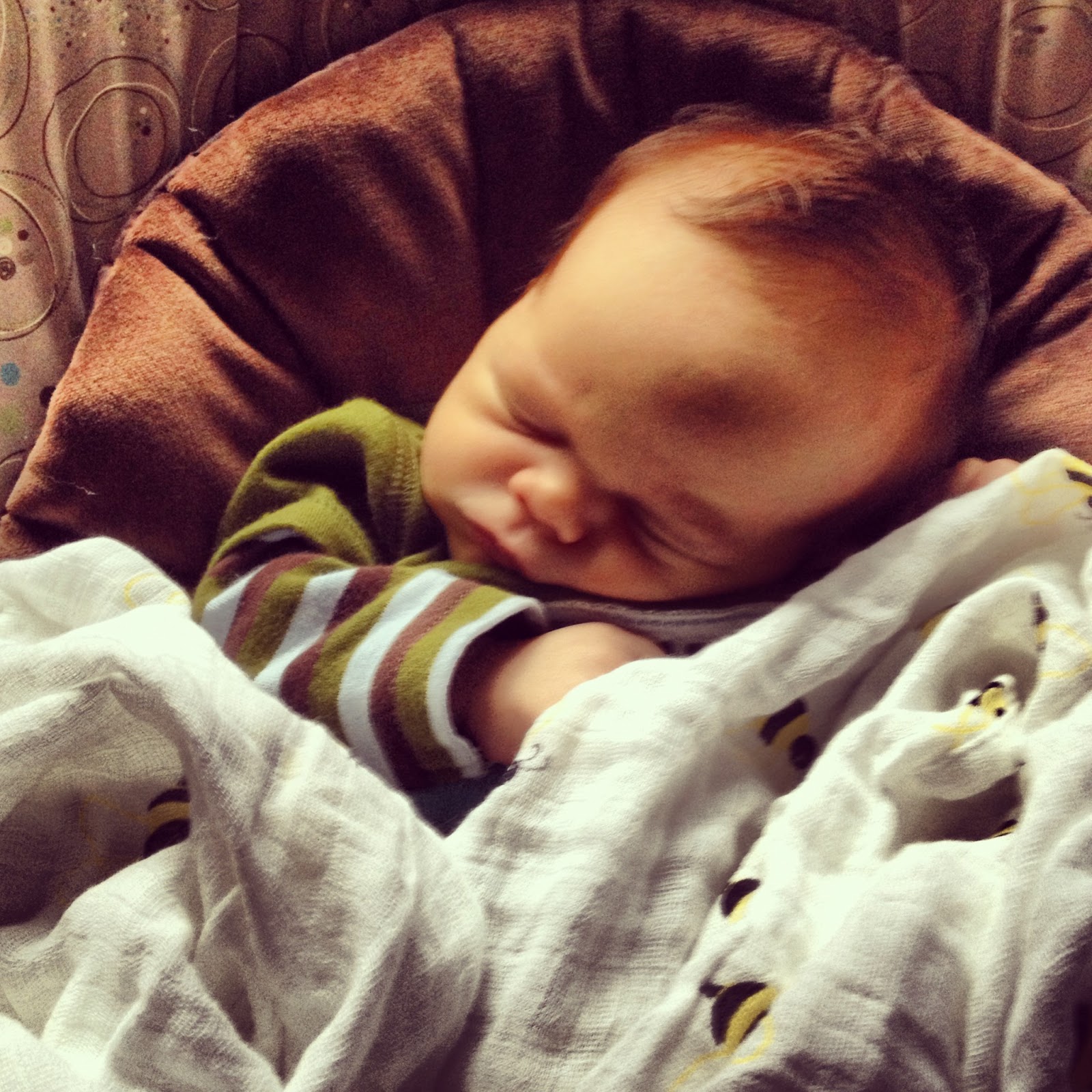 I don't want to jinx us, but nights seem to be getting a little better. He is still up every couple hours, but most of the time goes right back to sleep....which is awesome.